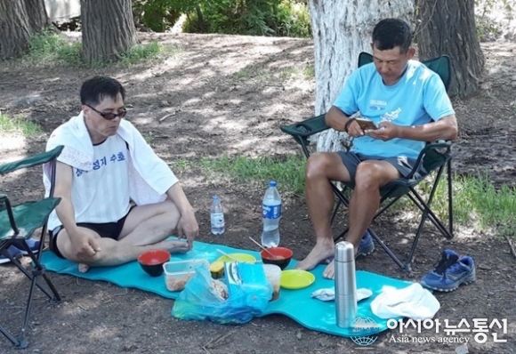 | 내 옆에서 내 발걸음의 무게를 덜어주려 달리고 있는 강석준 교무와 식사를 하고 있다.(사진=강명구) |