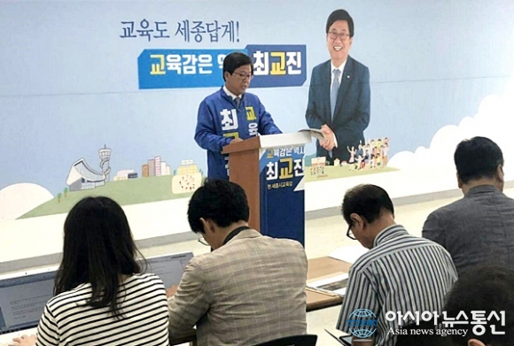 최교진 세종시교육감 후보는 29일 자신의 선거사무소에서 '교육도 세종답게'라는 비전 아래 캠퍼스형 교육과정 확대 등 5대 공약을 발표했다.