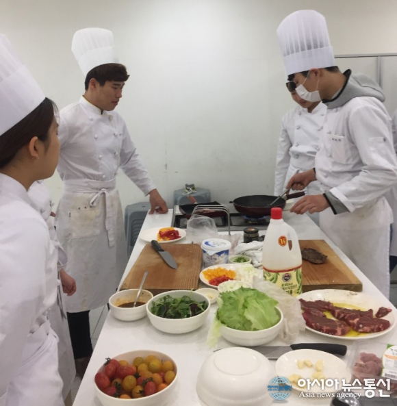 대구과학대학교 식품영양조리학부에서 지난달 31일 운영한 '대학생 저염레시피 발군단'에서 학생들이 직접 음식요리를 하고 있다.(사진제공=대구과학대학교)