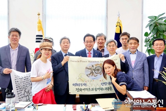 먼저 이장희 평마사 상임공동대표(외국어대 명예교수)와 송인엽 집행위원장(교원대 교수) 등 10명의 대표단은 이날 송 의원과 강명구 평화마라톤의 진행상황을 설명하고 국민들의 관심과 응원을 당부했다.