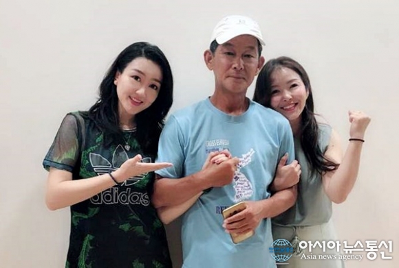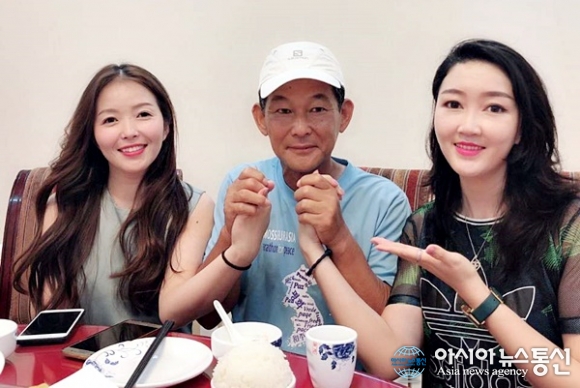 | 중국 우루무치 부근에서 만난 선녀와도 같은 우렁각시 샨산과 그녀 친구 도도와 함께.(사진=강명구) |