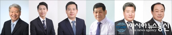 | 13일 실시한 지방선거에서 세종시 구도심 1~6선거구 당선확정인으로 결정된 (왼쪽부터)서금택 이태환 김원식 채평석 차성호 이재현씨./아시아뉴스통신DB |