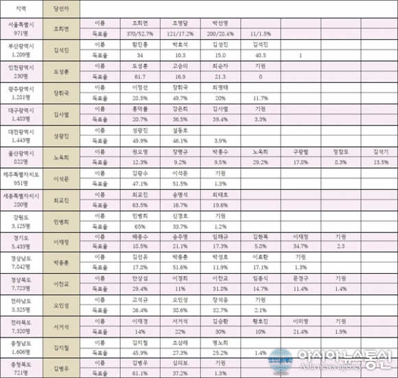 실제 투표 결과와는 대구(강은희) 대전(설동호) 경북(임종식) 전남(장석웅)이 달랐다.