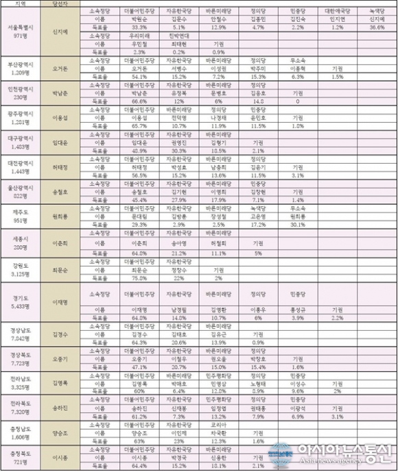 또 시도 교육감 모의투표 결과는 서울-조희연 부산-김석준 인천-도성훈 광주-장휘국 대구-김사열 대전-성광진 울산-노옥희 제주-이석문 세종-최교진 강원-민병희 경기-이재정 경남-박종훈 경북-이찬교 전남-오인성 전북-김승환 충남-김지철 충북-김병우로 나왔다.