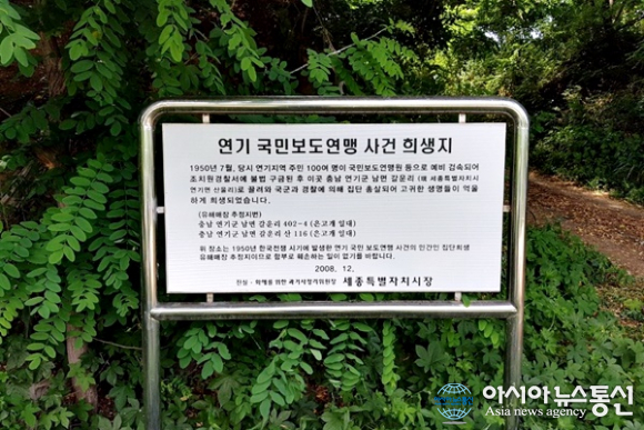 세종시는 지난 2008년 '진실화해를 위한 과거사 정리 위원회'에서 조사한 바 한국전쟁 당시 연기군 지역에 거주하던 300여 명의 국민보도연맹 회원들 중 남자들은 이 곳에서, 여자와 아이들은 현재 오가냥뜰 근린공원 일근에서 학살된 것으로 파악하고 있다.