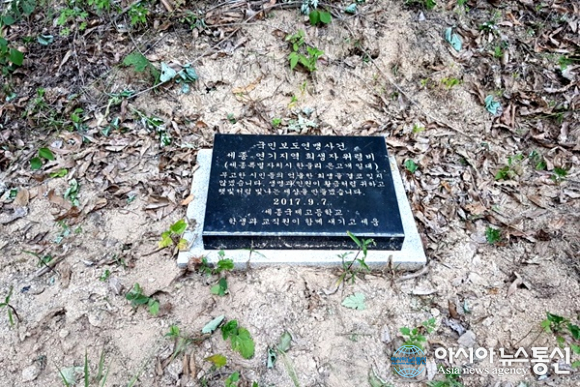 | 지난해 9월 세종국제고등학교 학생과 교직원들이 설치한 희생자 추모비./아시아뉴스통신=홍근진 기자 |