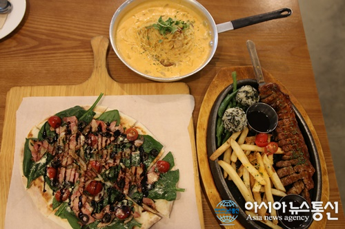홍대 맛집 중에서도 스테이크 맛집 ‘홉스피제리아’는 메뉴가 다양한 데다 화려한 비주얼을 선사함은 물론, 가격 또한 합리적인 편이어서 가성비 높은 식사를 할 수 있다.