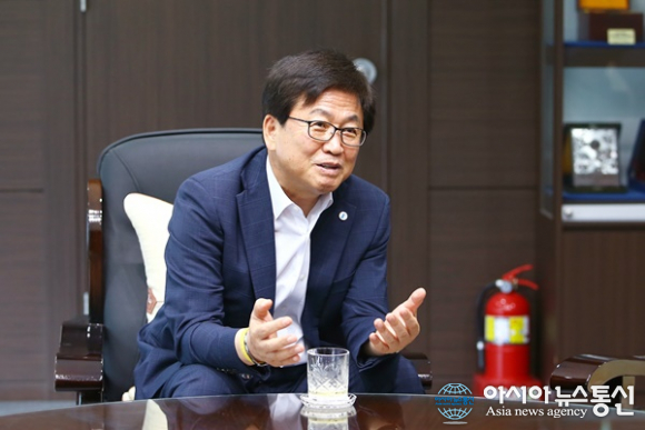 | 17일 최교진 세종시교육감이 그의 접견실에서 본지와 인터뷰를 하고 있다.(사진제공=세종시교육청) |