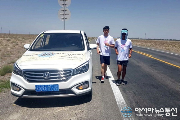| 서울서 온 김창준 평화마라톤을 사랑하는 사람들 사무처장과 나를 지원해 주는 자동차.(사진=장용) |