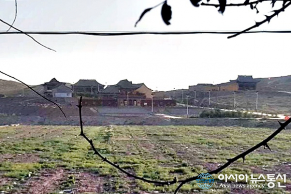 | 중국 간쑤성(甘肅省) 우에이(武威)와 닝샤후이족자치구 중간쯤 있는 흙벽돌로 만든 건축물.(사진=장용) |