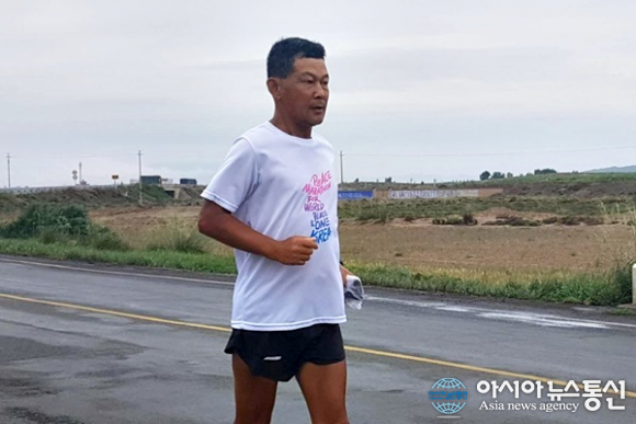 | 중국 간쑤성(甘肅省) 우웨이서 닝샤후이족자치구(寧夏回族自治區) 중웨이로 달리는 필자.(사진=장용) |