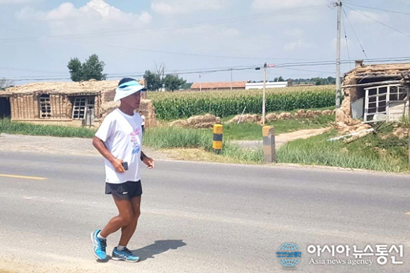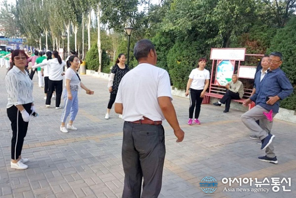 | 산시성(陝西省) 딩벤현(定邊縣)서 Anbianzhen(安邊鎭)으로 가는 길에 운동하는 중국인.(사진=장용) |