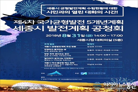 세종시가 오는 31일 시청 대회의실에서 제4차 국가균형발전 5개년계획 공청회를 연다고 23일 밝혔다,