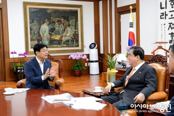 이 시장은 이날 문희상 국회의장에게 "개헌 논의는 올해 내에 다시 시작 해야 한다"며 여야 합의를 통한 개헌 추진과 행정수도특별법 제정을 건의했다.