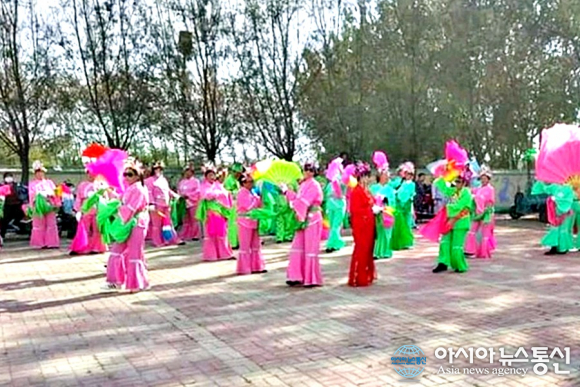 | 랴오닝성의 한 공원에 모여 형형색색 부채를 들고 춤을 추는 아주머니들의 모습이 정겹다.(사진=강명구) |