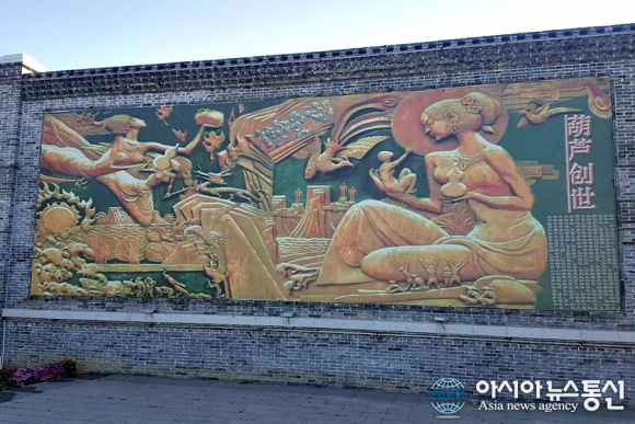 | 중국 랴오닝성(遼寧省) 후루다오시(葫蘆島市) 건축물 벽에 설치된 이채로운 미술작품.(사진=강명구) |