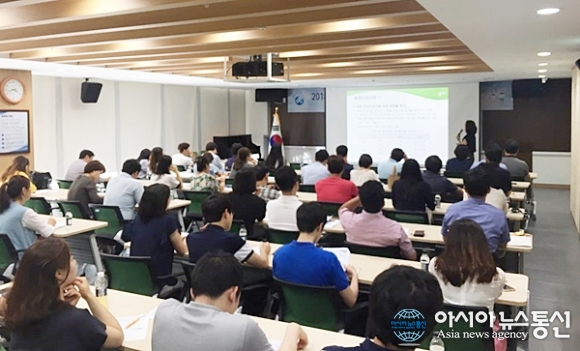 | 지난해 7월 시교육청이 주관해 열리고 있는 '학교주관 교복 구매' 관계자 연수 장면./아시아뉴스통신DB |