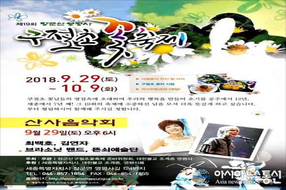 | 29일부터 다음달 9일까지 열리는 '제19회 장군산 영평사 구절초 꽃 축제' 홍보 포스터.(사진제공=영평사) |