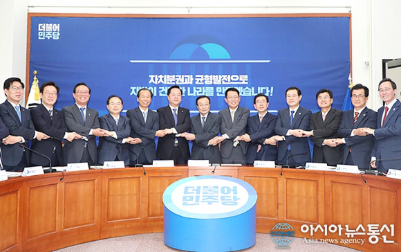 | 11일 국회 이해찬 민주당 당대표실에서 11명의 소속 시.도지사들이 간담회를 가졌다.(사진제공=세종시) |