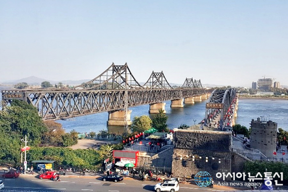 | 중국 단동 압록강 철교(왼쪽)와 미군 폭격으로 중간이 잘린 단교의 모습./아시아뉴스통신=홍근진 기자 |
