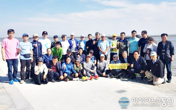 | 유라시아대륙을 달려 도착한 압록강에서 한국에서온 응원단과 기념사진./아시아뉴스통신=홍근진 기자 |