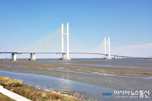 | 지어진지 4년이 넘도록 개통되지 않은 단동과 신의주를 잇는 압록강대교./아시아뉴스통신=홍근진 기자 |