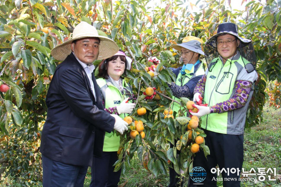 이날 참여자들은 단감재배 농장에서 단감 수확 및 포장, 농장정리 등 농작업을 도우며 하루 종일 구슬땀을 흘렸다.