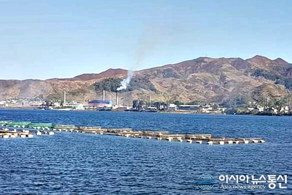 | 수풍댐 옆에 몇 년전부터 재가동되면서 굴뚝에서 연기를 뿜는 규소와 철을 생산하는 공장.(사진=강명구) |