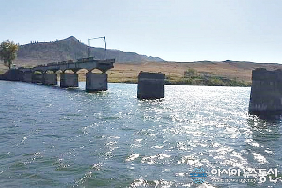 | 6.25때 중국군 주력부대가 북한 땅으로 들어가던 다리가 끊어져 흉물스럽게 방치돼 있다.(사진=강명구) |