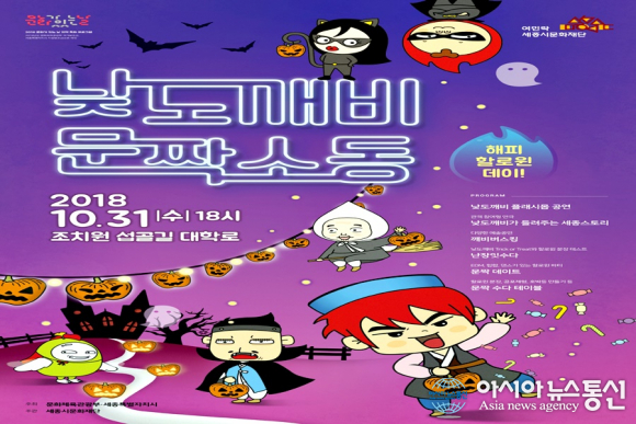 이날 메인무대에서는 관객 참여형 연극 낮도깨비가 들려주는 세종스토리, 호박바구니에 사탕을 채우는 Trick or Treat 미션 게임 등 문화예술 프로그램들이 3시간 동안 진행될 예정이다.