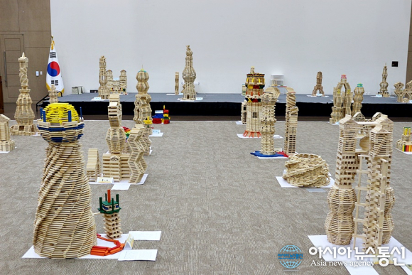 | 26일 세종시 정부컨벤션센터 4층 대연회장에서 열린 세종교육축제 '구조물 경진대회 산출물 전시회'에 각급학교 학생들이 접착제 없이 나무조각을 이용해 만든 각종 구조물들이 멋지게 서있다./아시아뉴스통신=홍근진 기자 |