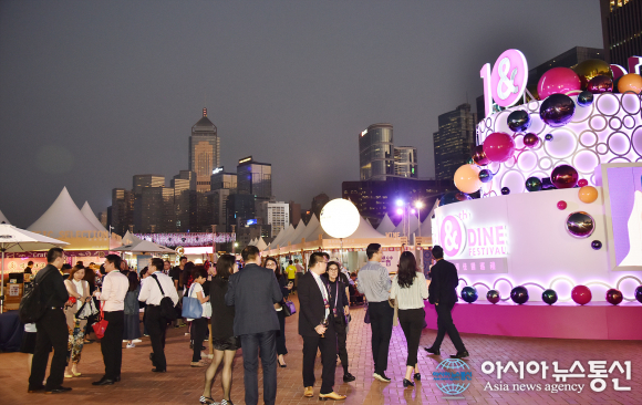 | 지난 25일 오후 홍콩 센트럴 하버프론트에서 '제10회 홍콩 와인 & 다인 페스티벌'이 열리고 있다. 홍콩관광청이 올해로 10년째 주최한 이번 행사는 아시아 와인의 허브 홍콩에서 전세계 와인과 미식을 백만불 야경의 센트럴 야외에서 선보이는 오감만족 축제로서 4일간의 일정을 마치고 28일 폐막했다./아시아뉴스통신=유지현 기자 |