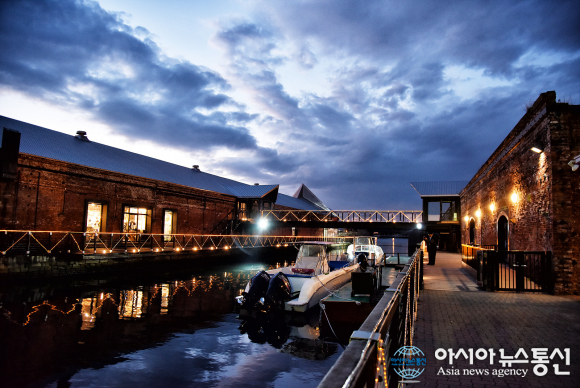 | 지난 22일 오후 일본 홋카이도 하코다테시 가네모리 아카렌가 모습. 하코다테 시내 해변의 옛 붉은 벽돌 창고를 관광명소로 재탄생시킨 이곳에서는 창고마다 다양한 테마의 상점과 레스토랑, 바 등을 만날 수 있고 선착장에서 유람선을 타고 바다에서 관람할 수도 있으며, 특히 저녁에는 바다와 조명, 음악이 어우러진 낭만적 분위기를 연출해 관광객들의 발길이 끊이지 않는다./아시아뉴스통신=유지현 기자 |