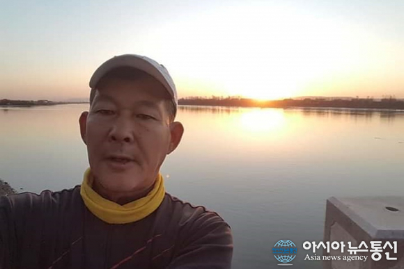 | 입북을 기다리는 동안 나는 매일 아침 압록강변을 달리면서 강건너 떠오르는 해를 본다.(사진=강명구) |