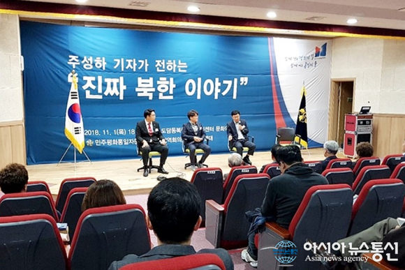 1일 민주평통 세종지역회의가 평화통일 공감대를 형성하고 활동 외연을 넓히기 위해 도담동 복컴 강당에서 개최한 '평화공감 토크콘서트'에서 북한 출신 주성하 기자가 제안한 내용이다.