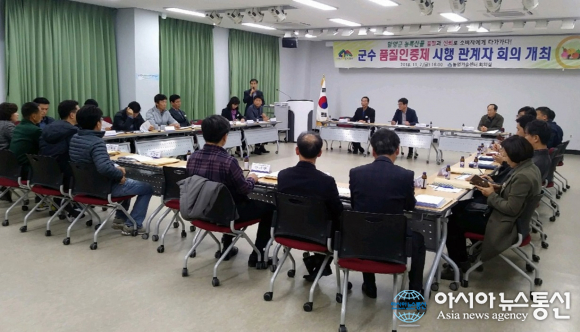 군은 군수 품질인증제 시행에 앞서 2일 오후 작목별 재배기술 전문지도사와 읍면산업경제담당, 농협군지부 연합사업단, 지역농협 유통상무 등 30여명이 참석한 가운데 관계기관 실무회의를 갖고 ‘농산물 군수 품질인증제’ 준비에 박차를 가하고 조기에 정착이 될 수 있도록 한데 힘을 모으기로 했다.