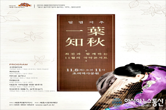 | 세종시문화재단이 오는 8일 초려역사공원서 국악강좌로 마련한 '일엽지추' 공연 포스터.(사진=문화재단) |