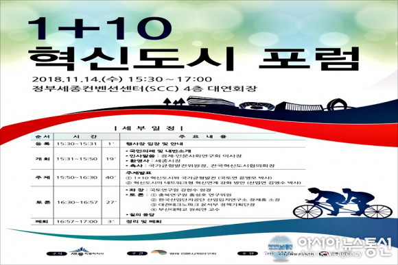 세종시가 오는 14일 오후 3시 30분부터 정부컨벤션센터 대연회장에서 '1+10 혁신도시포럼'을 개최한다고 10일 밝혔다.