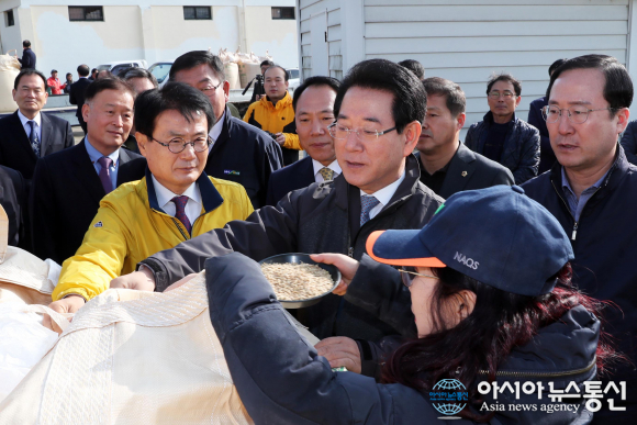 김영록 도지사는 공공비축미 매입 현장에서 “올해 가뭄, 태풍의 영향으로 작황이 부진해지는 등의 이유로 쌀 생산량이 줄었지만, 쌀값이 안정화되고 있어 그나마 다행”이라며 농가 소득 유지를 위해 특등급이 많이 나오길 바랐다.
