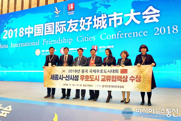 세종시가 지난 14~16일 중국 우한(武漢)에서 열린 국제우호도시대회에서 '교류협력상'을 수상했다고 18일 밝혔다.