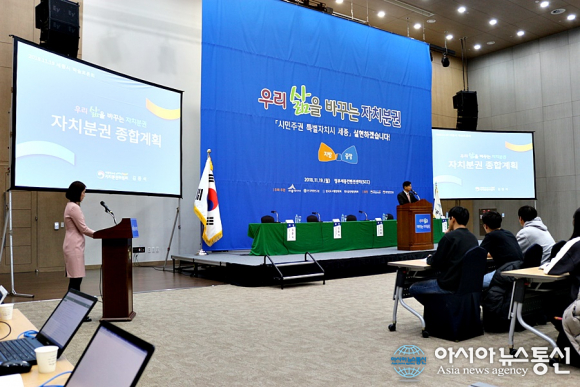 이어 김중석 대통령 소속 자치분권위원회 자치분권제도분과 위원장은 종합계획에 반영된 주민주권 구현, 중앙권한의 지방이양, 재정분권 추진 등 6개 전략과제의 구체적 실현 방안을 설명했다.