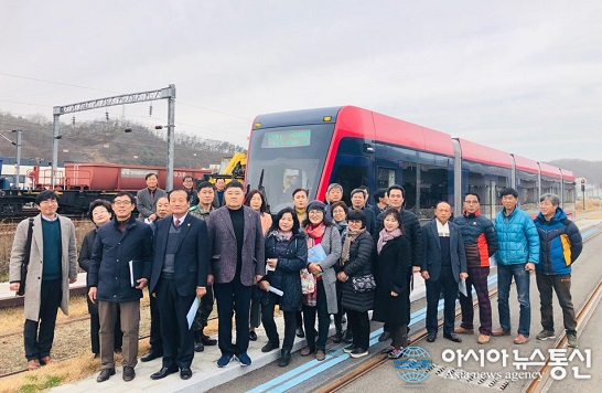충북 청주시 오송읍 주민들이 28일 한국철도시설공단 오송시설장비사무소 현장을 방문해 무가선 저상트램을 시승하고 주요시설을 견학했다.