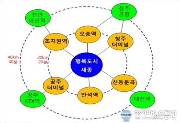| 행복도시권 광역교통협의회에서 제시된 세종시를 중심으로 한 대중교통망 개념도.(사진제공=행복청) |
