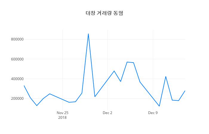 대창의 등락률은 전일에는 -1.67%의 등락률을 보였으나
