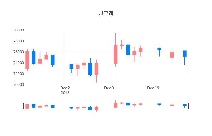 2018년 12월 24일 오후 1시 08분 빙그레가(005180) 6,811주의 거래량을기록하고 있다. 빙그레의 시가총액은 7,457억원, 상장주식수는 9,851천주다.