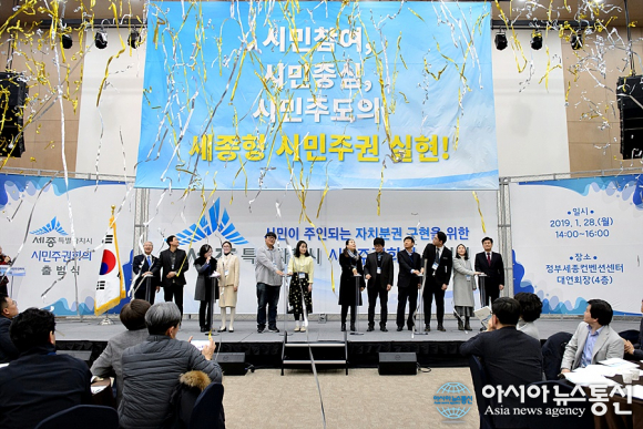 세종시가 28일 정부컨벤션센터에서 '시민주권회의 출범식'을 열고 시민주권특별자치시 실현을 위해 본격적인 활동에 들어갔다.