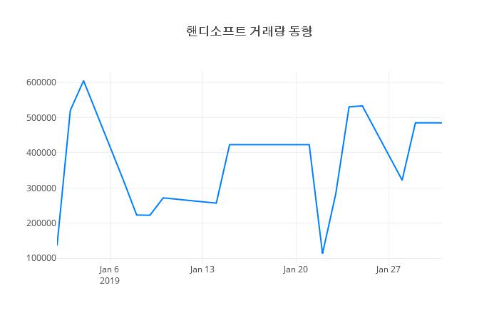 1일 장 마감시점 현재 핸디소프트의 시가총액은 773억원, 상장주식수는 8,986,000주다.
