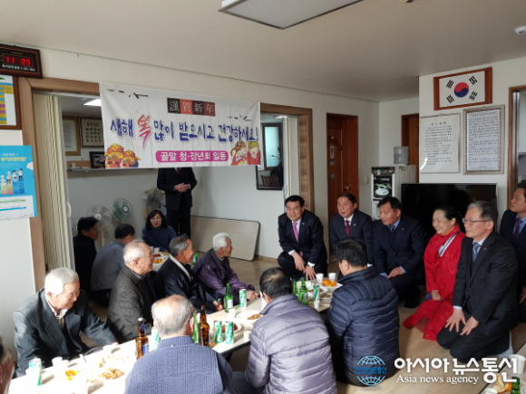 | 5일 강원도 동해시 골말마을에서 설을 맞아 심규언 동해시장(왼쪽에서 첫번째)을 비롯한 기관.단체장들이 도배식(합동새배)을 갖고 마을 어르신들에게 새해 인사를 드리고 있다. 이날 도배식에는 이철규 국회의원, 심규언 시장, 최석찬 동해시의회 의장, 박석찬 동해시의원, 김종문 동해시 부시장 등 기관.단체장 등이 함께 했으며 골마마을, 봉정마을, 이도마을 등 일곱 군데에서 열렸다.(사진제공=동해시청) |