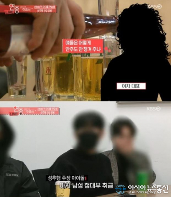 오늘(8일) 방송된 KBS2 예능 프로 ‘연예가중계’에서는 남자아이돌 성추행 논란을 다뤘다.
