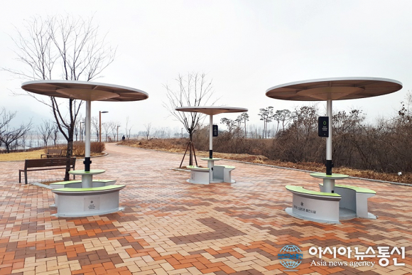 | 행복청이 세종시 호수공원 일원 스마트시티 체험존에 추가되는 태양광 충전 테이블.(사진제공=행복청) |